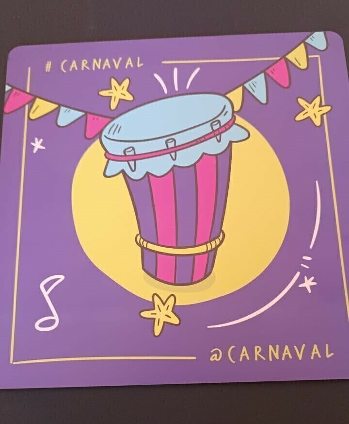 Display Adesivado de mesa com tema Carnaval.